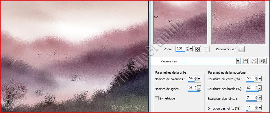 7 - Effets/Effets de Textures/Mosaïque de verre/avec ces réglages: Mes choix Nombre de colonnes : moyenne Nombre de lignes : élevée