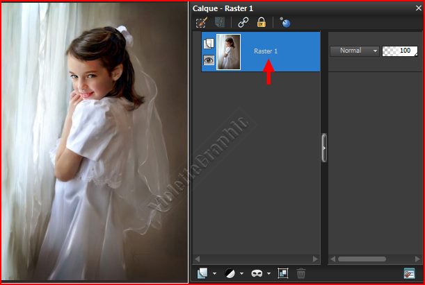 Dans la palette des Calques , le calque d'arrière-plan s'appelle Raster 1