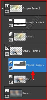 12 - Activer le calque de l'image mer Calques/Nouveau calque de masque/Afficher Tout de la même façon vous effacez au niveau de la mer
