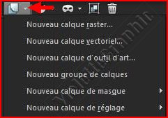 *** Penser à enregistrer souvent votre travail *** Pour créer un calque à partir de la palette Calques*** 1 - Dans la palette Calques, cliquez sur le calque sur lequel vous souhaitez créer un calque 2 - Choisissez un type de calque dans la liste déroulante de la barre d’outils de la palette Calques