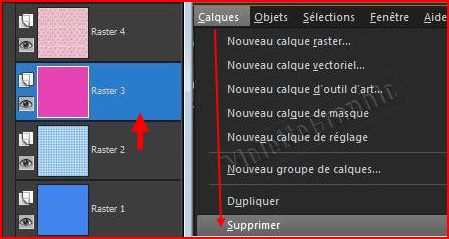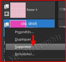 *** Penser à enregistrer souvent votre travail *** Suppression des calques et de leur contenu*** 1 - Pour supprimer un calque :**clic droit sur le calque à supprimer/ clic sur Supprimer