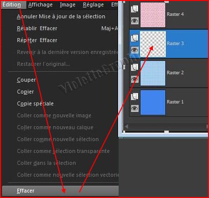 2 - Pour supprimer le contenu d'un calque :Edition/Effacer : il reste alors un calque vide