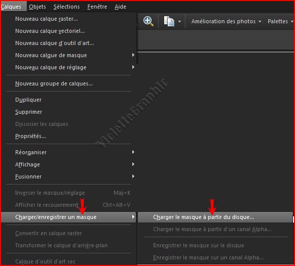 *** Penser à enregistrer souvent votre travail *** Pour charger un masque à partir d’un disque*** Sur la palette Calques, cliquez sur le calque que vous souhaitez masquer Calques / Charger/enregistrer un masque Charger le masque à partir du disque pour ouvrir la boîte de dialogue