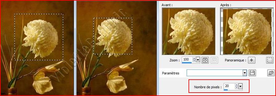 7 - Sélection/modifier/Agrandir de 20 pixels la sélection est agrandie