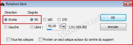 2 - Calques/Dupliquer Image/Rotation libre réglages suivants : droite/de 90°