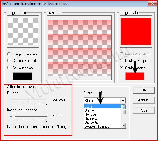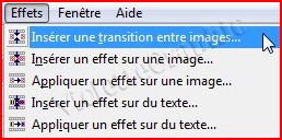 8 - Ouvrir l'image texte **Effets/Insérer une transition entre images