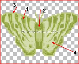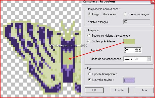 celle du haut: qui correspond à la couleur à remplacer : couleur précédente ici vert foncée : clic gauche sur votre papillon