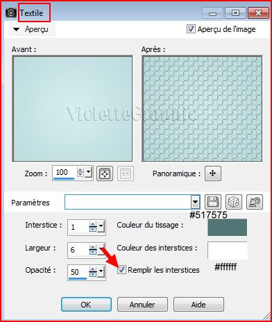 5 - Effets/Effets de Textures/Textile réglages suivants :