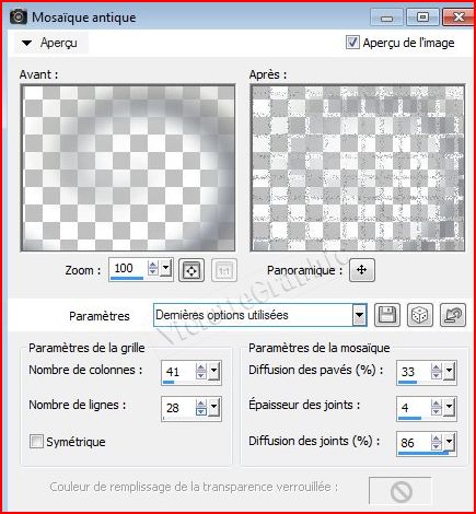 15 - Effets/Effets de Textures/Mosaïque antique réglages suivants: