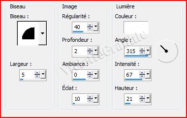 19 - Effets/Effets 3D/Biseautage Intérieur réglages suivants :