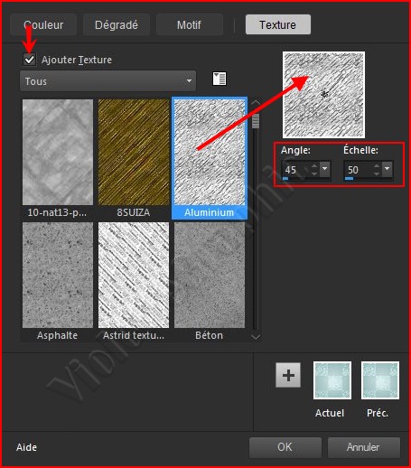 ces effets de texture s'appliquent sur les couleurs et ici sur la couleur d'arrière-plan puisque nous avons cliqué dans le pavé de la case arrière-plan