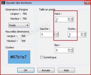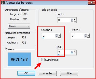6 - Image/Ajouter des bordures : 2 pixels à gauche et en bas /couleur #67b1e7