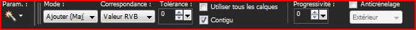 **Sélectionner la bordure avec la baguette magique ( valeur: RVB /Tolérance et Progressivité à 0 /intérieur) Remplir de dégradé linéaire