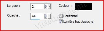 **Effets/Effets 3D/Ombre Portée : 2/-2/50/2/couleur #2 74470