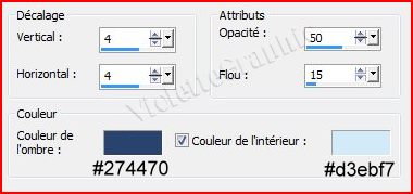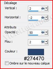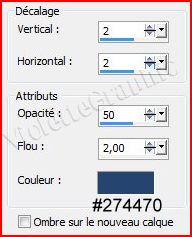 25 - Effets/Effets 3D/Ombre Portée : 2/2/50/2/couleur #274470