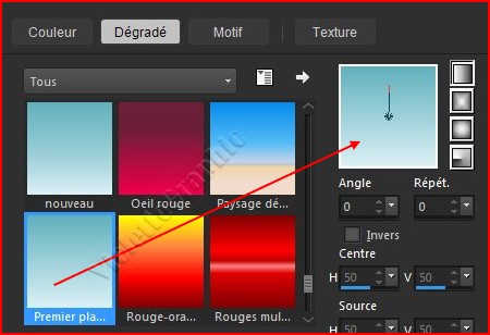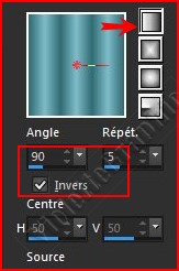 **Remplir de dégradé linéaire angle : 90°/répétition: 1 /Inverser coché