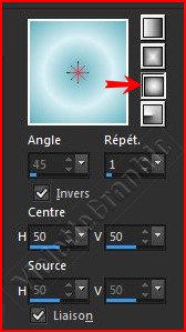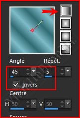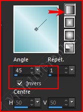 3 - Configurer un dégradé linéaire angle: 45°/Répétition: 1/Inverser coché