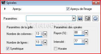 20 - Effets/Effets de Distorsion/Spirales réglages suivants :