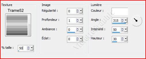 6 - Effets/Effets de Textures/Texture réglages suivants :
