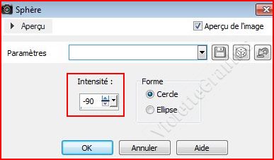 7 - Effets/Effets Géométriques/Sphère réglages suivants :
