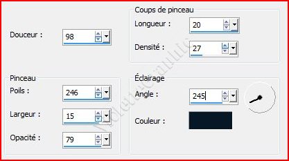 9 - Effets/Effets Art Média/Coups de pinceau réglages suivants : couleur #01192c