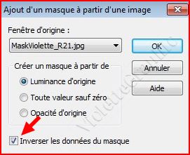 10 - Activer le masque MaskViolette_R21.jpg Calques/Nouveau calque de masque/à partir d'une image/Ajout d'un masque à partir d'une image sélectionner le masque MaskViolette_R21.jpg