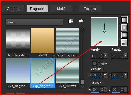 3 - Dans la Palette de Style rechercher votre dégradé Vyp_degrade_cours23.PspGradient