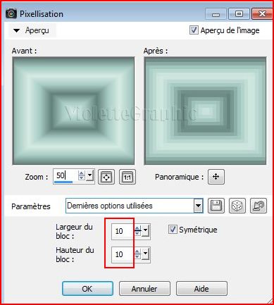 **Effets/Effets de Distorsion/Pixellisation réglages suivants :