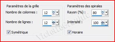 10 - Effets/Effets de distorsion/spirales réglages suivants :