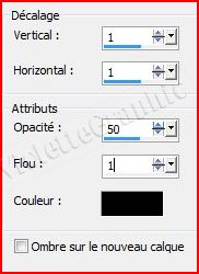 **Réglages/Traitement rapide des photos Effets/Effets 3D/Ombre Portée: 0/0/50/25/ couleur #000000