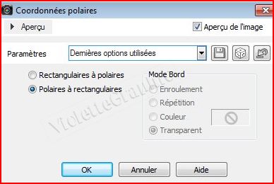 13 - Effets/Effets de distorsion/Coordonnées polaires réglages suivants :
