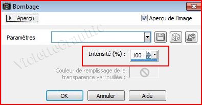 ** Effets/Effets de distorsion/Bombage réglages suivants :
