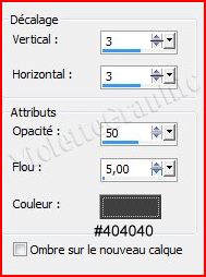 5 - Effets/Effets 3D/Ombre Portée réglages suivants :