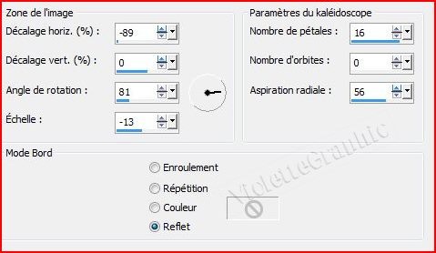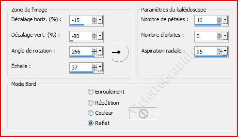**Effets/Effets de Réflexion/Kaléidoscope réglages suivants :