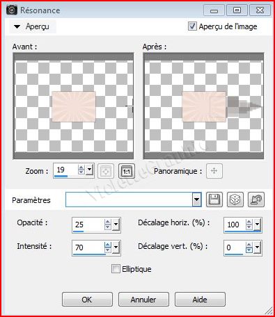 10 - Activer le calque supérieur Effets/Effets de Réflexion/Résonance réglages suivants :