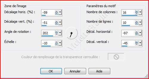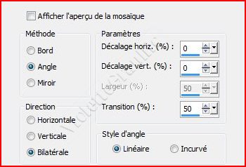 **Effets/Effets d'image/Mosaïque sans jointure réglages suivants: