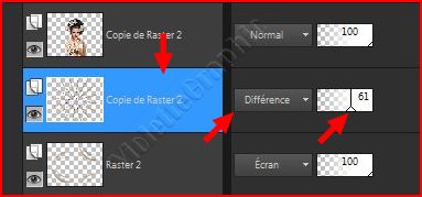 **Placer en Mode de fusion: Différence Opacité à 61%