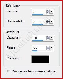 Sélection/Ne rien sélectionner **Effets/Effets de bords/Accentuer ** Effets/Effets 3D/Ombre Portée réglages précédents