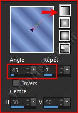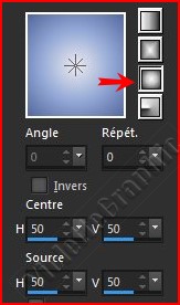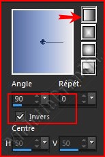 2 - Placer en premier-plan la couleur #eceaed et en arrière-plan la couleur #52679c Dans la Palette de Style Configurer un dégradé linéaire angle: 90°/Répétition: 0/Inverser coché