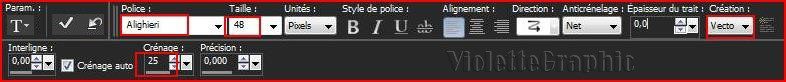 Texte sur Courbe *** Tube Vyp_Cours29_image01.pspimage Police Alighieri pinceau kap-korners6 004.PspBrush ( à placer dans le dossier pinceaux de Corel PaintShop Pro ) Preset Emboss 3 ( à placer dans le dossier Paramètres par défaut de Corel PaintShop Pro )