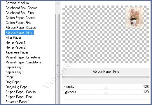 **Effets/Unlimited/Paper textures/Fibrous Paper, Fine réglages suivants :