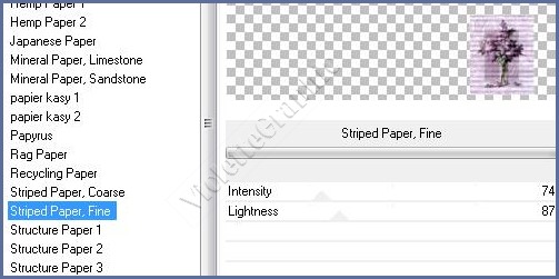 **Effets/Unlimited/Paper textures/Striped Paper, Fine réglages suivants :