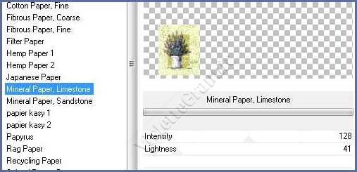 **Effets/Unlimited/Paper textures/Mineral Paper, Limestone réglages suivants :