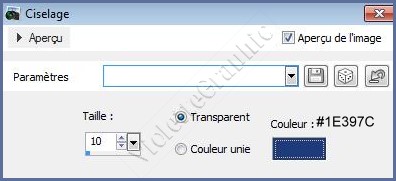 **Effets/Effets 3D/Ciselage réglages précédents :