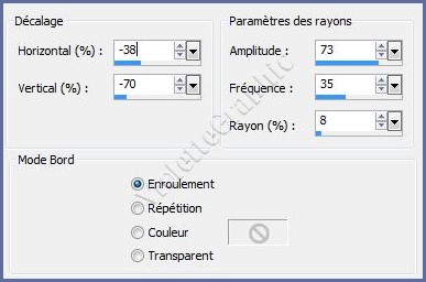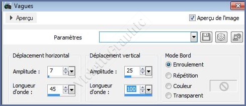 **Effets/Effets de Distorsion/Vagues réglages suivants :