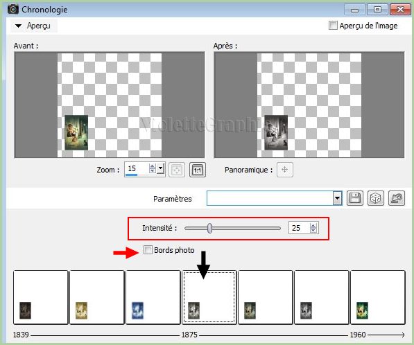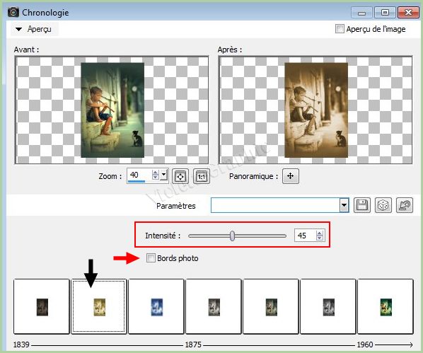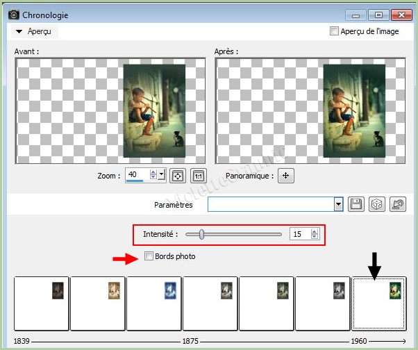Effets/Photos/Chronologie réglages suivants :