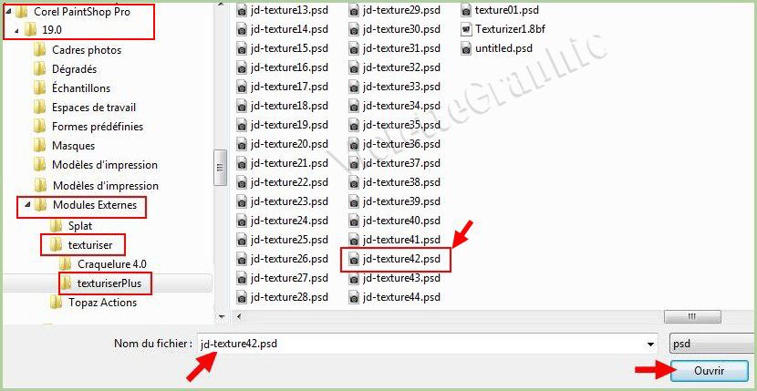 rechercher le dossier des textures  : texturiserPlus : choisir la texture jd-texture42.psd