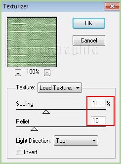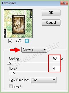 **Effets/Texture/Texturiser réglages suivants: