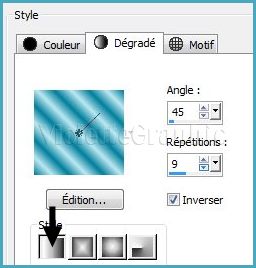 2 - Configurer un dégradé linéaire/angle : 45°/Répétitions : 9/inverser coché