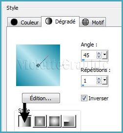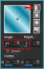 ** Remplir de dégradé linéaire/angle: 45°/Répétition: 1 /inverser coché